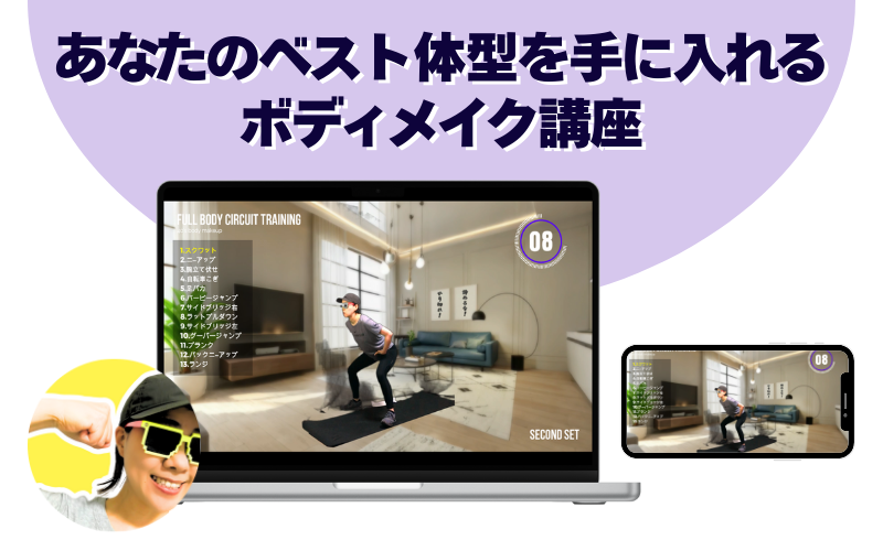 この講座は、 パーソナルに近いプログラム完全自宅完結オンラインで 受講できるボディメイク講座です。 まず、肥満タイプ診断から始まり 食事・生活習慣・運動などを 段階的に学べる全7ステップで構成された ボディメイク法を実践できます。